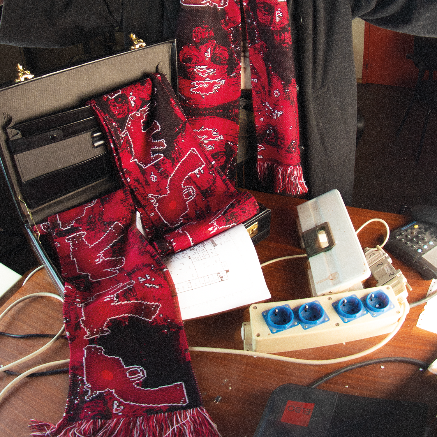 2-METER scarf with outlined cs:s styled gun motif's on the front and ''The Russian Sleep Experiment x Osama bin Laden" on the backside.